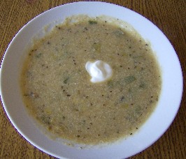 Jeder einen El oder mehr saure Sahne auf den Teller in die Suppe.