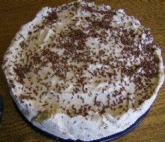 Baiser zerkleinern, Krokant, Kaffee + etwas Schoko Streusel vermischen.