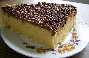 Wenn die Fruchtmasse noch zu dünn ist, also noch nicht angefangen hat zu gelieren, steigen die Baiserstücke nach oben, kann mich nicht mehr erinnern, wie es letzte Mal war, damit sie nicht alle oben raus sehen, habe ich den Kuchen mit Schokoladenstreusel abgedeckt. Dadurch bleiben sie innerhalb, lösen sich zum Teil auf, vielleicht kann man es auch auf den Fotos sehen.