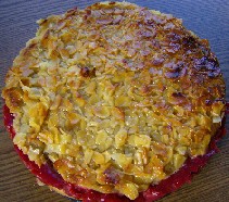 den Kuchenboden auf Backpapier in die Ringform legen, den Pflaumenmus drüber legen/ gießen, glatt streichen, den Deckel drauf, ein wenig andrücken, + ein paar Stunden in den Kühlschrank, zum fest werden.