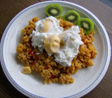 Titel: Verlorene Eier auf Tomatenreis Extra Information: Glutenfrei + Milchfrei