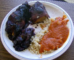 Naturreis mit der Bratensoße aus dem Schnellkochtopf