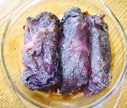 * Es reichen auch ca 1 kg, Kohl, nur dann sind die Blätter so klein + man muss dann 2 nebeneinander legen. Habe dann eben von den übriggeblie-benen Rest, Krautkohl mit Feigen hergestellt.