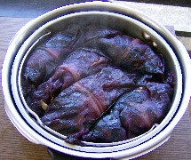 2-3 Rouladen in drei oder vier a ein Liter eingefettete feuerfeste Form ge-ben,
