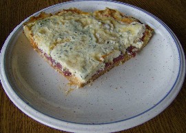 Ketchup drauf verteilen, mit Salamischeiben den Teig bedecken, Gauda drauf raspeln, Feta, Eier in der Milch pürieren, TK Kräuter dazu, und über den Gauda gießen. Deckel drauf, und bei Mittelhitze bis das Milchgemisch gestockt ist, backen.