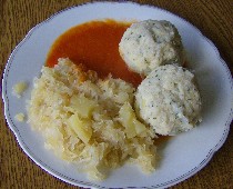 Das Sauerkraut daneben anrichten. Die Sauce über die Klöße geben