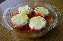 *Die Menge des Frischkäse richtet sich nach der Größe de Tomaten, 4 Stück in eine ein Liter große feuerfeste Schüssel.