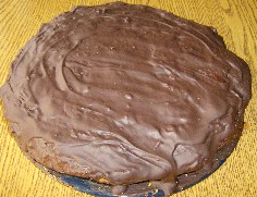 im Wasserbad schmelzen lassen. Den abgekühlten Kuchen aus der Form lösen, mit der aufgelösten Schokolade bestreichen.