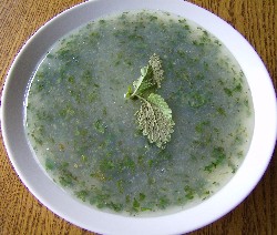Vorsicht blubbert sehr stark, Verletzungsgefahr, runter von der Hitze, die kleingehackten Melisseblätter zugeben, umrühren und