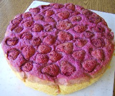nun noch die halbieren Erdbeeren, mit der Schnittseite in/auf den Teig le-gen.