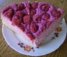 nun noch die halbieren Erdbeeren, mit der Schnittseite in/auf den Teig le-gen.