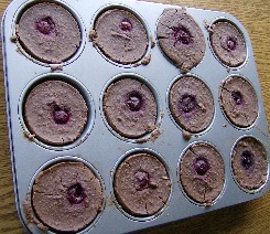 In jede Mulde noch eine TK Kirschen geben, evtl ein wenig reindrücken.