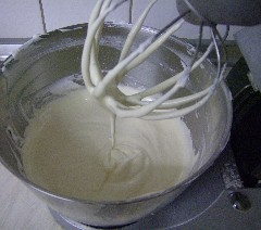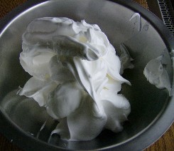 steifgeschlagenes Eiweiß vorsichtig unterheben, KEIN Metall verwenden.