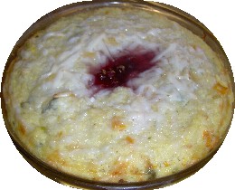 das steife Eiweiß, mit einem Holzlöffel (Holzquirl ) unter den Käse Hirse Mischung unterheben, und in die zwei eingefettete Auflaufformen verteilen, glattstreichen, den geraspelten Ziegenkäse drauf verstreuen, und in die Mitte noch, je einen Tl Preiselbeeren geben, Deckel schließen, wichtig, Ziegenkäse wird sonst hart,