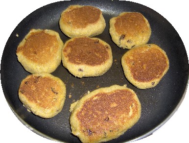 Auf eine kalte Kochplatte stellen, mit Stufe drei von sechs möglichen Stu-fen ca 35 –40 min backen, wer will kann noch eine gleichgroße Bratpfanne drauflegen, umdrehen und weitere 10-20 min backen.