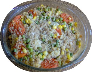 Hirse mit heißem Wasser abspülen um evt Bitterstoffe zu entfernen, in 2 Tassen kochendes Wasser geben, Hitze auf kleinster Stufe, Deckel schlie-ßen, nach 5 min Hitze ausstellen und 10 min quellen lassen, ist dann tro-cken und fast weiß.