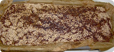 in eine 35 cm mit Backpapier ausgelegte Kastenbackform gießen, glatt-schütteln, evtl noch ein paar Samen auf die Oberfläche geben in den Backofen bei ca 50° ruhen bzw gehen lassen, bis er sich gehoben hat, ist nicht so viel.