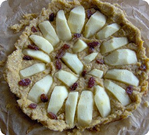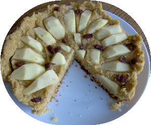 Äpfel schälen, entkernen, achteln, mit der schmalen Seite in den Teig drü-cken, in den Zwischenräumen noch die Sultaninen legen, Deckel schlie-ßen, auf eine kalte Kochplatte stellen, und 30 min auf Mittelstufe backen,