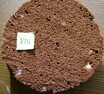 Runter von der Hitze, Kirschwasser dazu rührend, etwas abkühlen lassen, auf den Biskuitboden gießen, glattstreichen, den Deckel drauflegen, ein wenig rein drücken, ein paar Stunden kaltstellen zum verfestigen.