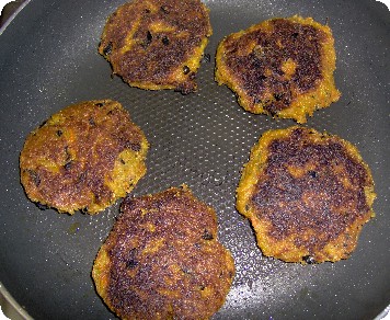 Bratlinge formen und im heißen Olivenöl von beiden Seiten braten, Hitze reduzieren, Deckel drauf, wäre nicht schlecht, bei mir waren es ca 15 min,