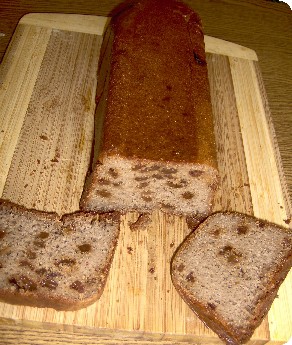 alle trocknen Zutaten vermischen, sowie das Wasser dazu, verrühren, las-sen, zum Schluss die Sultaninen unterheben, alles in eine 30 cm mit Backpapier ausgefüllte Kastenbackform gießen, ca dreiviertelvoll, glatt schütteln, an einem warmen Ort, Ruhen lassen, bis sich der Teig gut ge-hoben hat, füllt die Backform bis zum oberen Rand aus, in den kalten Backofen bei ca 150°C Heißluft ca 110 – 120 min backen, Backpapier vor-sichtig entfernen, Brot von allen Seiten gut mit Olivenöl einpinseln, mit der Oberfläche nach unten, weitere 15-20 min bei gleicher Hitze backen.