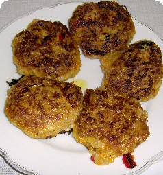 in eine große Schüssel geben, alle anderen Zutaten dazu, gut vermengen, mit nassen Händen flache Bratlinge formen, im heißen Öl von beiden Sei-ten bräunen.