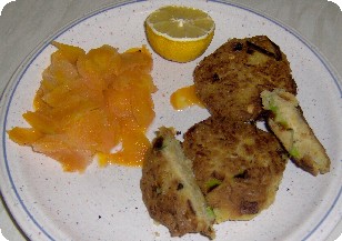 der Probebratling ist erforderlich damit man auch ein gewisses Gefühl für diese Dinger bekommt, Heiß servieren, Mann/ Frau träufelt sich einige Zit-ronentropfen auf die Bratlinge.