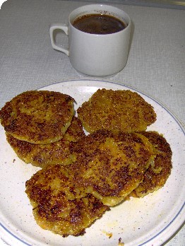 Bei so eine Art "Kartoffelpuffer" esse ich lieber Zucker drauf und 1 Tasse Kaffee frisch gebrüht.