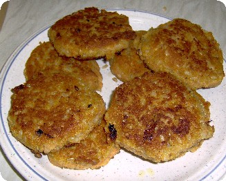 Trocknen Zutaten vermischen zu der feuchten Masse geben, gut vermi-schen, Bratlinge formen, und im heißen Öl, bei reduzierter Hitze von bei-den Seiten braten.