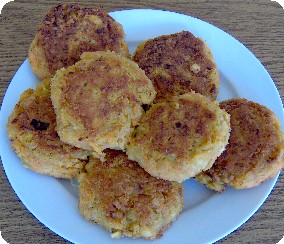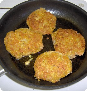 Möhren u Kartoffeln fein raspeln, Zwiebel und Ingwer klein hacken, Flüs-sigkeit zwischen 2 Handballen ausdrücken, aufheben, wenn sich die Stärke abgesetzt hat, Flüssigkeit in eine andere Tasse gießen, die Stärke zum Teig geben, Tofu klein hacken, mit Zucker u Salz u Pfeffer vermengen, abschmecken, eventuell nachwürzen, nun die gemahlenen rote Linsen un-termischen, mit einer Hand, dabei kann man gleich fühlen, ob noch Flüs-sigkeit gebraucht wird, hat bei mir gereicht, so trank ich den Gemüsesaft, Bratlinge formen, im heißem Öl bei reduzierter Hitze, nach ca 5 min, 2-3 x 5 min, wenden, Gefühlssache, Mann, Frau sieht es, oder einfach ein Bratling auf-schneiden.