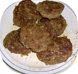 Dann mit feuchten Händen kleine Bratlinge formen und im Öl bei Mittelhit-ze von beiden Seiten braten.