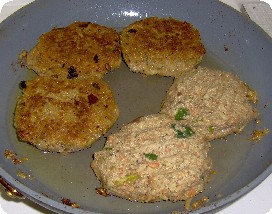 Alle Zutaten bis aufs Bratfett vermischen, mit feuchten Händen Bratlinge formen, zusätzliche Flüssigkeit nicht erforderlich, im heißen Bratfett bei reduzierter Hitze von beiden Seiten braten, ca 3 min pro Seite.