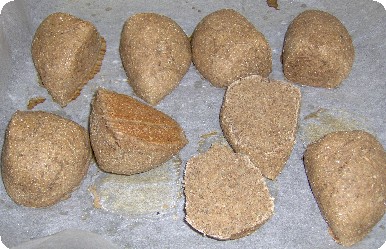alle trocknen Zutaten vermischen und Wasser zugeben und auf Mittelstufe ca 11-13 min kneten lassen, den Ballen in 8 Teile schneiden, auf ein mit Backpapier ausgelegtes Backblech legen, ca 30 min Ruhen lassen, vorm abbacken mit Wasser einpinseln,