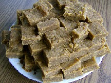 Eine völlig neue Gaumenfreude für viele Europäer ist dieses indische Kon-fekt. Beim langsamen Rösten des Kichererbsenmehles entsteht ein wun-derbarer, nussartiger Geruch, der für diese Köstlichkeit charakteristisch ist. Auch die Inhaltsstoffe brauchen sich nicht zu verstecken: Das Öl der Kichererbse kann den Cholesterinspiegel senken, sein Gehalt an Kalium und Magnesium stärkt den Herzmuskel. Calcium und Phosphor sind wert-voll für den Knochenbau. Wer in die Stadt Vrindavana in Indien kommt, wird dieses Rezept wiedererkennen. In den dortigen Tempeln werden die-se Süßigkeiten gerne an die Pilger verteilt, die voller Freude und Dankbar-keit die Speise akzeptieren, die zuvor Radha und Krishna auf dem Altar mit Liebe und Hingabe dargebracht wurde.