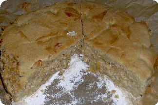 Die Äpfel wurden geraspelt, Saft abgeseiht, dann mit Zitronensaft, Butter u Kokosnuss ( Mandelallergie )vermengt.