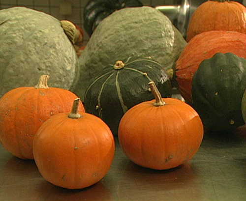 Winterkürbisse brauchen zum Ausreifen eine ganze Saison, haben eine harte Schale, ausgereifte Kerne und gelbes bis dunkel orangefarbenes Fruchtfleisch.