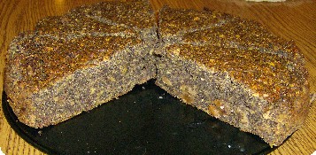 Rosinen in Rum einlegen 2 h ca, (kann auch unterbleiben). Mohn mahlen. Äpfel um den Griebsch rum grob raspeln. Backpulver mit Salz + Monda-min verrühren. Mohn dazu geben ,geraspelte Äpfel + Traubensaft, + Ro-sinen, geht auch nicht eingeweicht, alles ( ohne Rum ) vermischen. In ei-ne mit Backpapier ausgelegte Springform gießen, glatt streichen . In den kalten Backofen bei ca 150°C Umluft ca 60 min backen. Bei Ober- + Un-terhitze vorheizen auf ca 180°C + ca 40-50 min backen