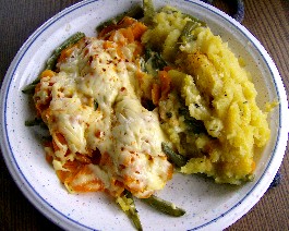 sollte man, nur eine Auflaufform nehmen, dann eben weniger Käse.