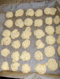 noch dazu, auf Mittelstufe der Küchenmaschine 5 min lassen und mit ei-nen Spritzbeutel auf ein mit Backpapier ausgelegtes Backblech kleine Ke-gel gespritzt, anschließend das Backblech für dreißig min in einen kalten Raum, in den kalten Backofen bei 160°C Heißluft 30 min gebacken, ganz auskühlen lassen, Vorsichtig beim hoch nehmen sie sind schön mürbe