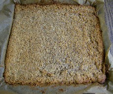 Teig auf ein mit Backpapier ausgelegtes Backblech geben, mit Backpapier bedecken, + in halber Größe des Backbleches auswallen, habe das Back-blech einfach zusammen geschoben, Backpapier abziehen, Alufolienstrei-fen als 4. Rand vor dem Teig gelegt, verhindert das Auseinanderlaufen.