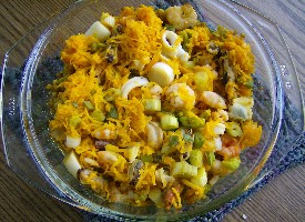 Geraspelten Paprika oder Kurkuma auf den Käse streuseln.