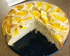 In eine 26 cm mit Backpapier ausgelegte Ringform , 2 Bananen in dicke Scheiben geschnitten auf den Boden legen, den Teig drauf gießen, die file-tierten Orangen in den Teig legen.