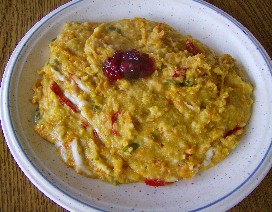 Von Möhren bis Ingwer und Tamari alles zusammen vermischen, ausge-quollenen Mais drunter vermischen.