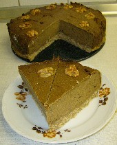 500 ml Wasser mit Salz + Zucker + evtl Kaffee zum kochen bringen, Ko-kosnuss einrühren, ca 60-180 sek kochen lassen, die in 100 ml kaltem Wasser aufgelöste Speisestärke, rein gießen + ca 120 sek rührend kochen lassen, in eine 26 cm Æ mit Backpapier ausgefüllte Ringform geben, glatt-streichen.