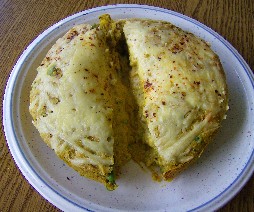 In zwei ausgefettete a 1 Liter feuerfeste Formen geben, glattstreichen, mit geraspelten Käse und Paprikagranulat bestreuen, in den vorgeheizten Backofen bei ca 140°C Umluft ca 50-60 min backen.
