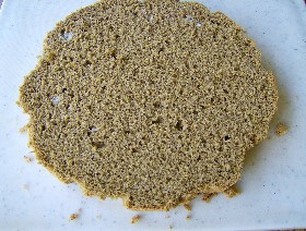 Biskuitkuchen umdrehen 1 x quer durchschneiden.