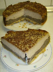 Die eingeweichten Datteln + den dazugehörigen Rum in den Mohn einrüh-ren, abschmecken, dann erst, wenn nötig, den restlichen Zucker dazuge-ben. Auf den Teigboden geben, glattstreichen.