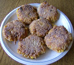 Zutaten von drei Tassen gekochten Reis bis einschließlich 150 g Buchwei-zen zusammen vermischen. Mit nassen Händen flache Bratlinge formen, im Buchweizenmehl wenden und im heißen Olivenöl auf Mittelstufe von beiden Seiten ca 10 min braten.