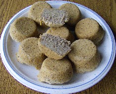 Als Brot die doppelte Menge der Zutaten nehmen, in eine mit Backpapier ausgelegte 30 cm Kastebackform geben, + ca 70-80 min backen,