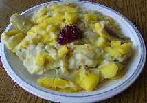 Für die Soße 100 ml trockenen Weißwein mit 1 El Mostrich gut verrühren, und in beide Formen gießen,